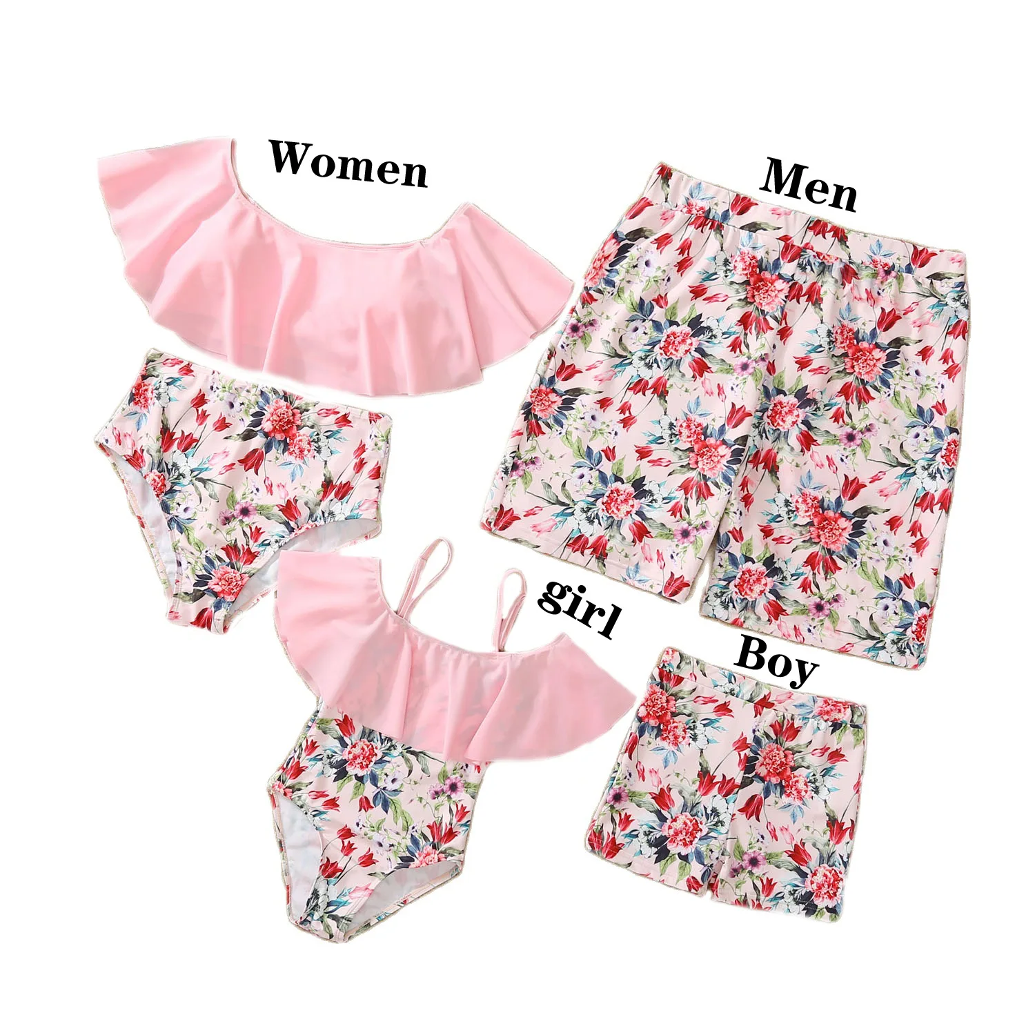 Custom New Parent-child Swimsuit Ruffled Bikini Mother and Daughter Men's Beach Pants Parent-child Four-piece Bikini Swimwear